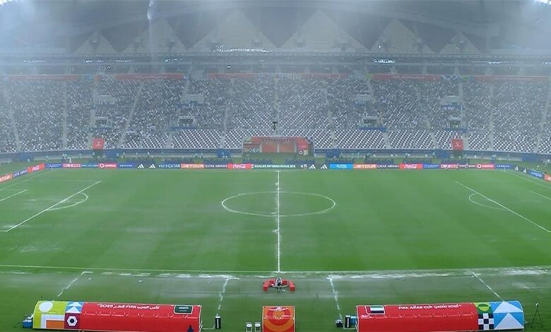 أعلن حكم مباراة المنتخبين السعودي والإماراتي ضمن منافسات كأس العرب 2025 عن تأجيل اللقاء رسميًا، بعد أن أجبرت الأمطار الغزيرة وسوء الأحوال الجوية على إيقاف المباراة في ملعب خليفة الدولي. وكان الشوط الأول قد انتهى بالتعادل السلبي 0-0، قبل أن تقرر لجنة المباراة التوقف حفاظًا على سلامة اللاعبين والجماهير.