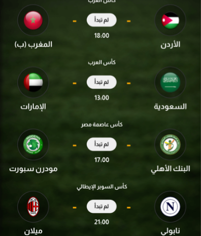 تشهد ملاعب كرة القدم اليوم مجموعة من المواجهات المهمة على المستويين العربي والأوروبي، ضمن منافسات بطولات مختلفة، يتصدرها كأس العرب…
