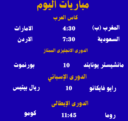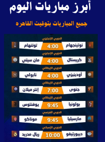 أكمل القراءة »تشهد ملاعب كرة القدم اليوم برنامجًا حافلًا بالمواجهات القوية على المستويين العربي والأوروبي، في يوم كروي مزدحم بالندية والإثارة، حيث…